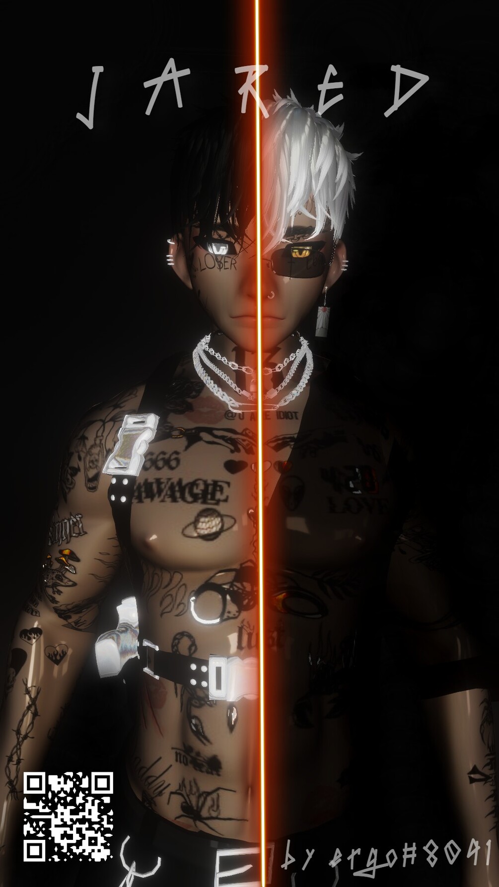 Import in SDK3, dynamic bones, arktoon (provided), the version of poiyomi toon shader provided, and the Jared package in that order. Open Jared scene and you’re good to go!
